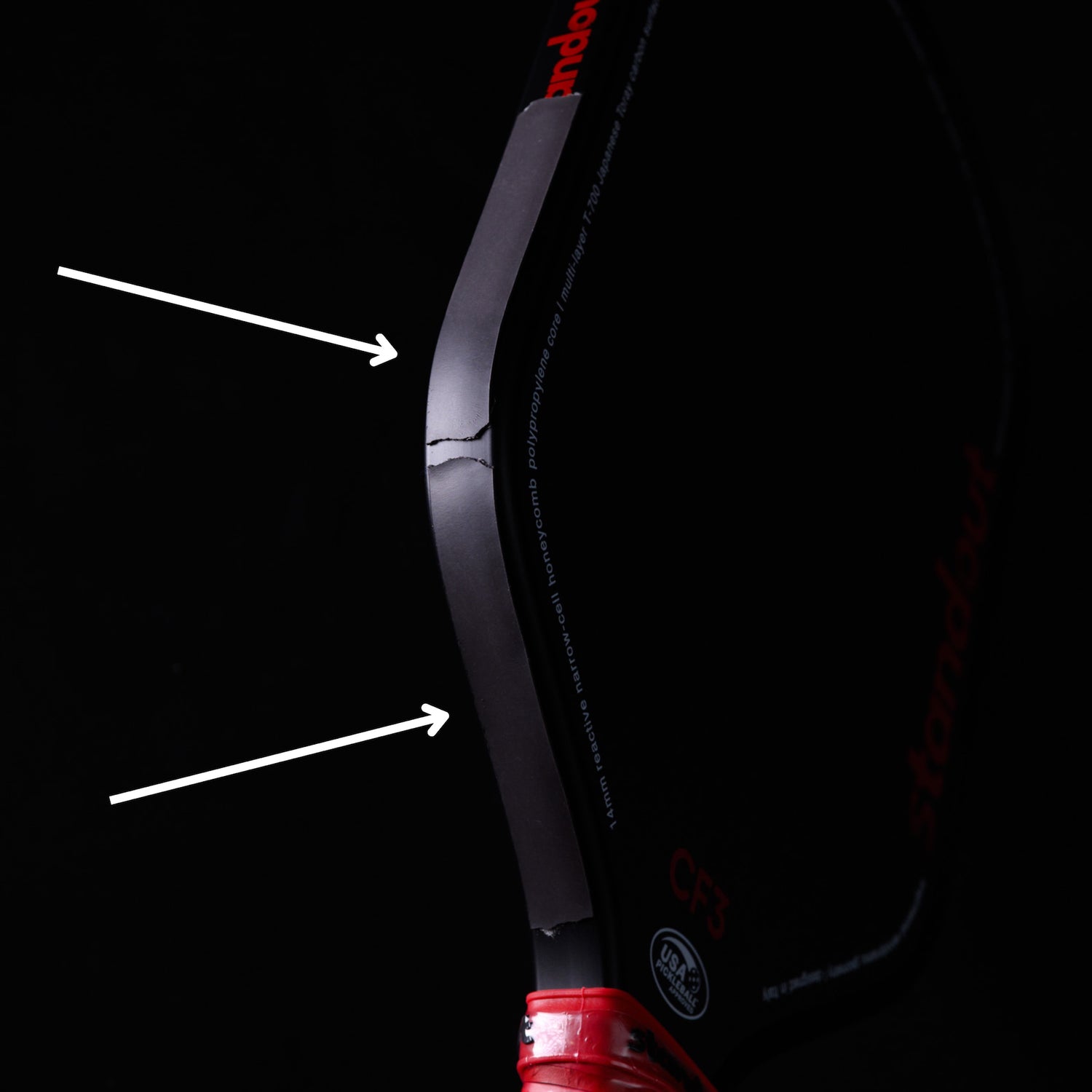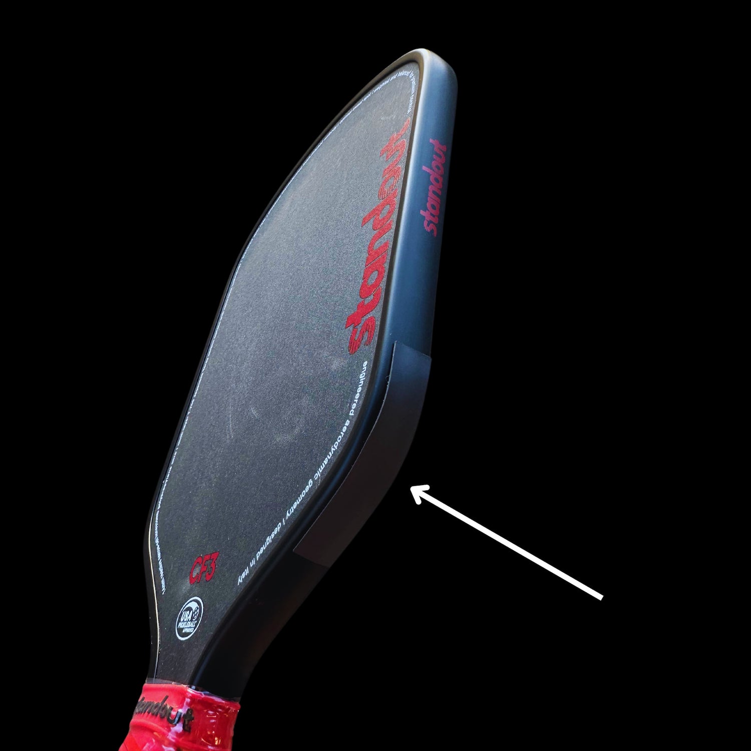 Paddles with low twist weight, like many edgeless designs, are less forgiving on off-center hits. For example, our edgeless KC1 16mm has a twist weight of 6.50 while our CF3 paddles with 14 mm and 16 mm thicknesses boast some of the highest twist weight ratings available. The CF3 14mm and CF3 Power have an average twist weight of 6.70, while the CF3 16mm Control averages 6.80. By strategically adding lead weight, we can boost the twist weight by over 10% from its original value. This results in fewer mishits and better control. Paddles with low twist weight fall short in comparison, and our high twist weight paddles provide players with a superior chance for consistent, high-quality shots.